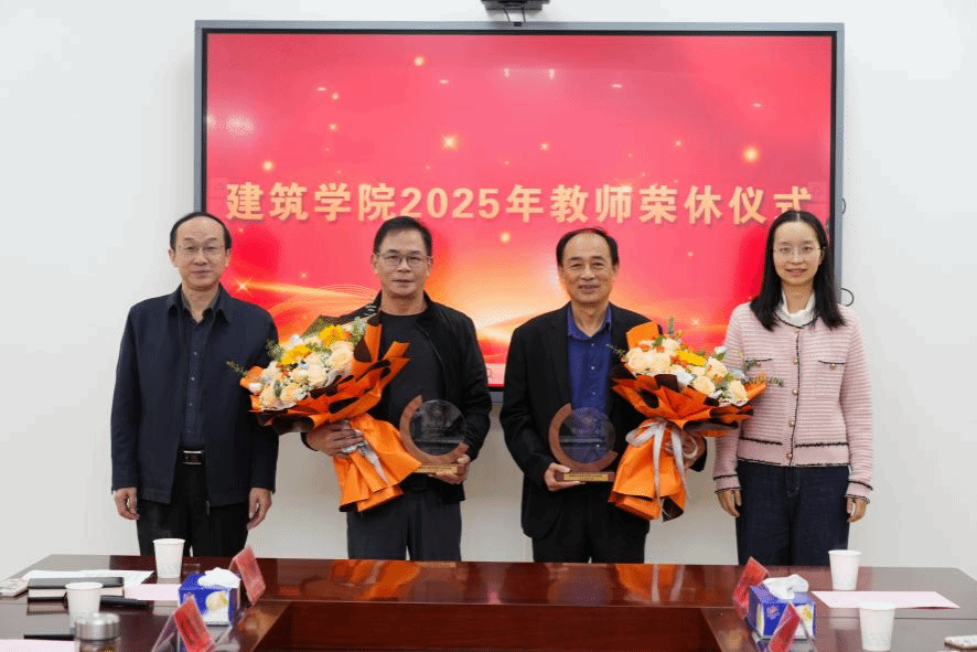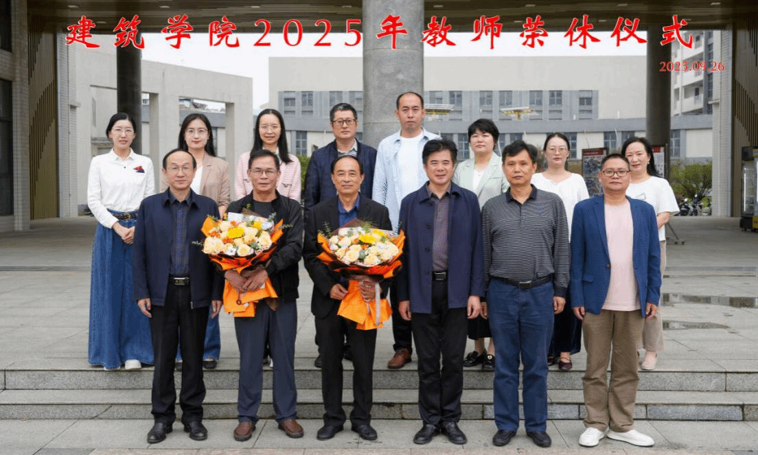 仪式最后,全体参会人员在天成楼前合影留念,用镜头定格这难忘的时刻。这场隆重的荣休仪式,不仅是对两位老师职业生涯的完美总结,更是对学院尊师重教优良传统的生动诠释,必将激励全院教师继续砥砺前行,共创建筑学院更加美好的明天。