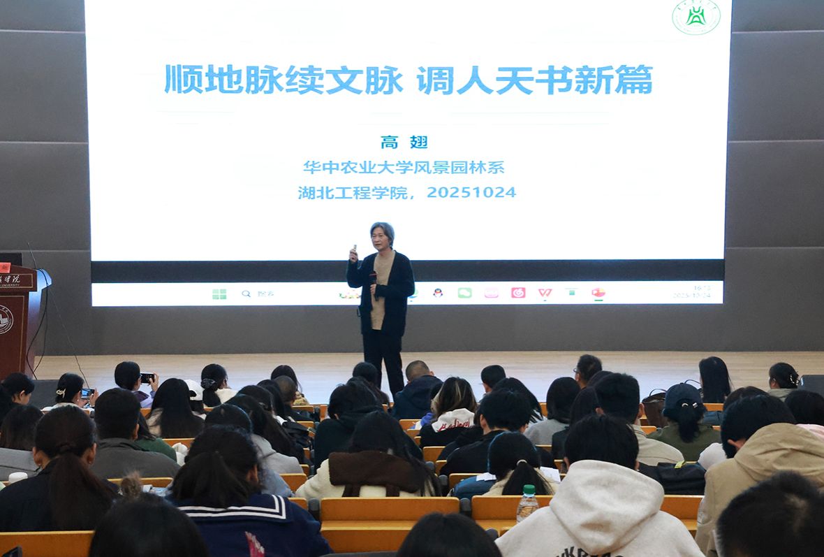 10月24日,华中农业大学二级教授、风景园林学博士生导师高翅教授受邀莅临我校,在座无虚席的报告厅内,为全校四百余名师生带来一场题为“顺地脉续文脉 调人天书新篇”的高水平学术报告。本次活动由科学技术处主办、建筑学院承办,学院副院长(牵头)陈必锋主持。