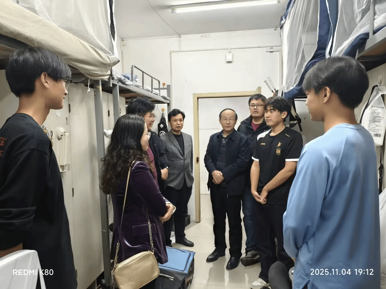 走访过程中,领导老师们细致察看寝室环境,与同学们深入交流,关切询问“生活上有无困难?”“学习上有无困惑?”。针对高年级及毕业班同学,则围绕实习、考研与就业等关键节点给予指导,勉励大家勤学苦练,提升综合素质。句句叮嘱,犹如长辈对晚辈的殷切关怀,将“孝爱”文化中的温暖与责任从家庭延伸至校园。