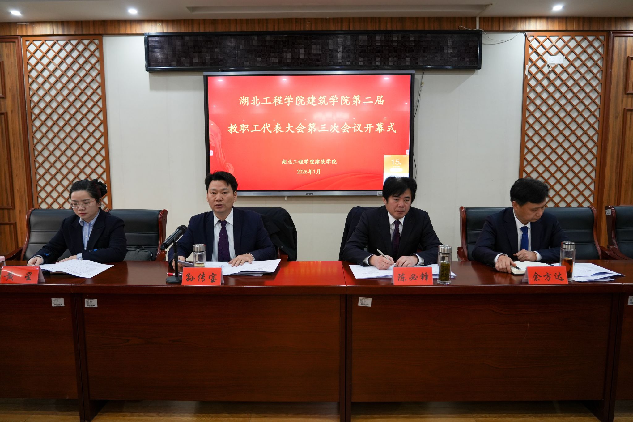 2026年1月12日上午,湖北工程学院建筑学院第二届教职工代表大会第三次会议在天成楼416会议室举行。学院44名正式代表参加大会。大会由建筑学院党委书记孙传宝主持。