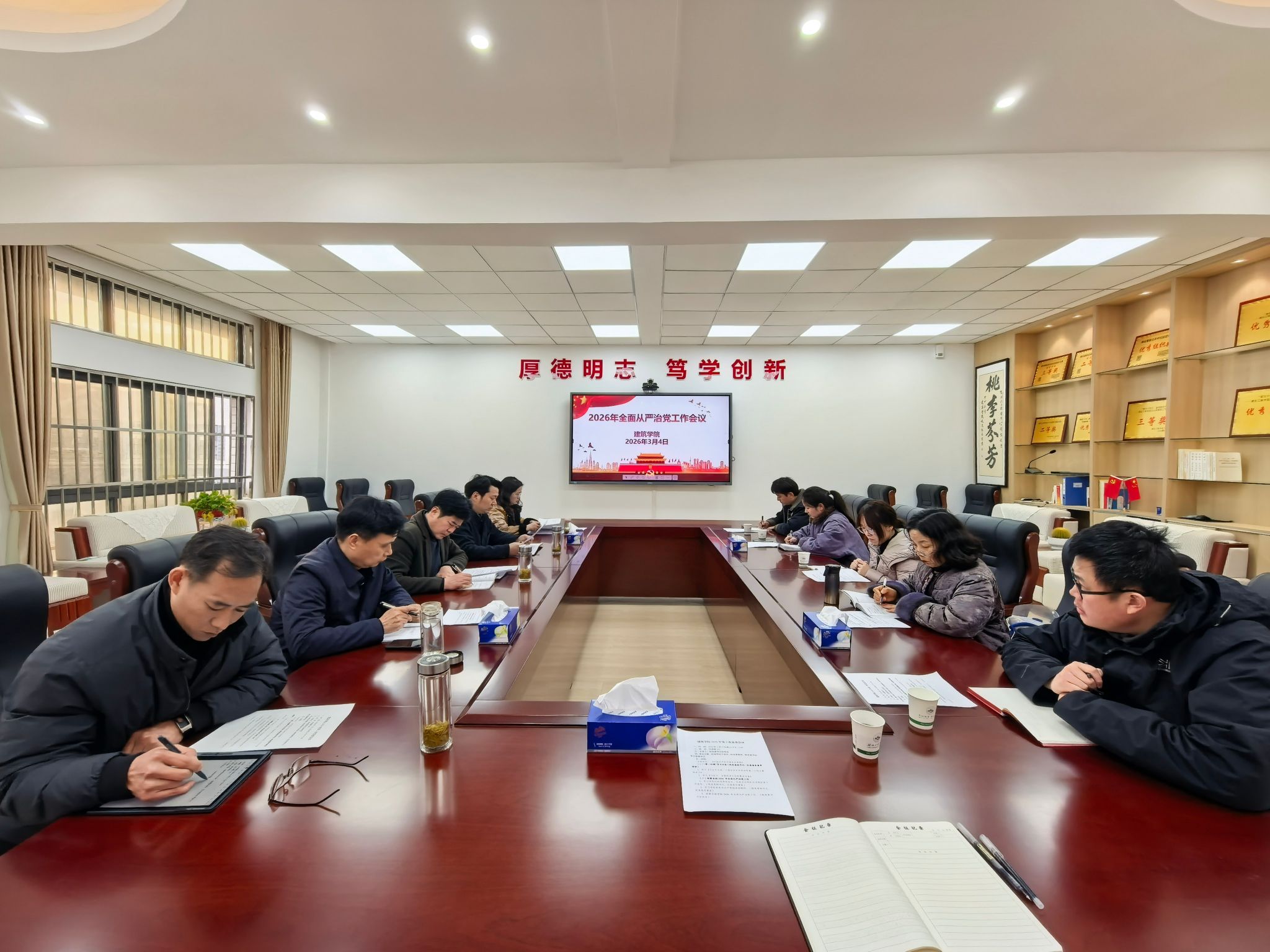 3月4日下午,学院召开2026年全面从严治党工作会议。院党委书记孙传宝出席会议并讲话,院党委副书记、纪检委员黄星主持会议。院领导班子成员、院党委委员、党支部书记、党支部副书记参加会议。