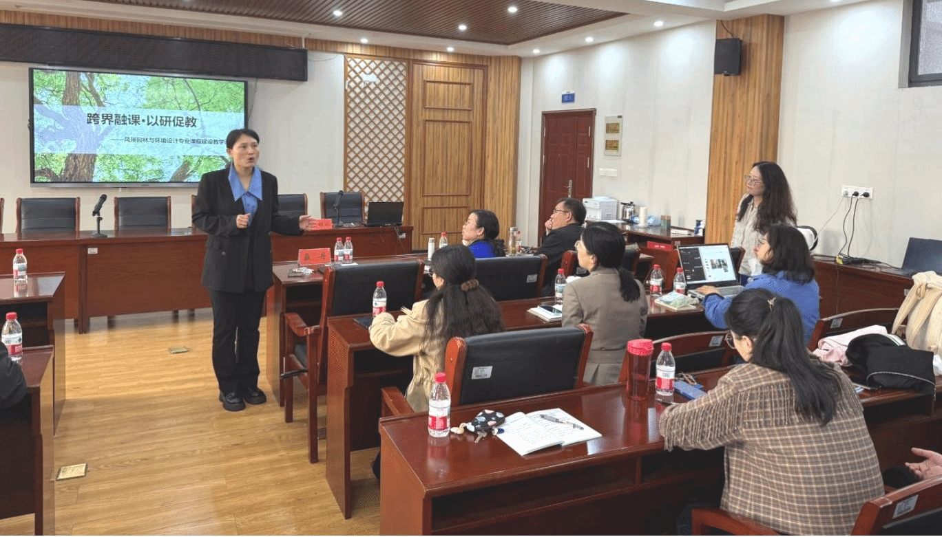 为扎实推进2026年学校“教学示范月”活动,深化跨学科教学融合,提升课程建设质量,4月9日下午,由建筑学院主办、美术与设计学院协办的“跨界融课·以研促教”风景园林与环境设计专业课程建设教学沙龙,在天成楼416会议室顺利举行。建筑学院风景园林系、美术与设计学院环境设计系全体教师参与交流研讨。