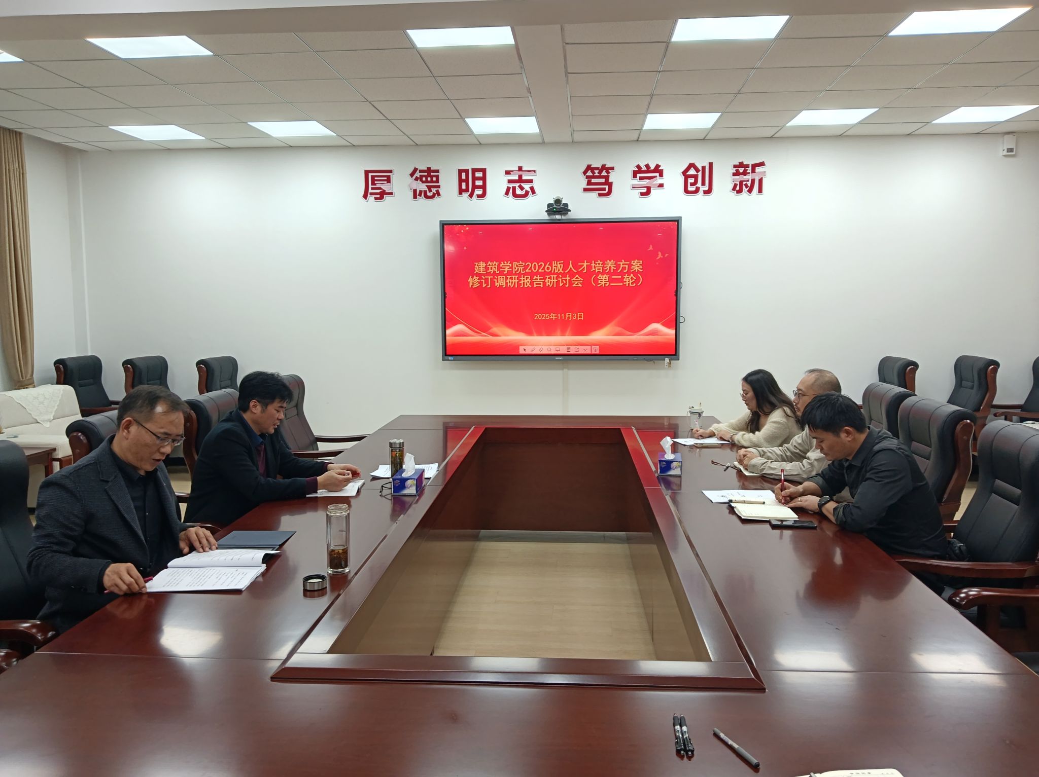 11月3日19:00,建筑学院于天成楼314会议室召开2026版人才培养方案修订调研报告第二轮研讨会。学院教学指导委员会全体成员参会,会议由院长助理胡平主持。此次研讨会是学院深化专业内涵建设、对接行业发展需求的重要环节,对保障2026版人才培养方案的科学性、前瞻性与可行性具有重要意义。
