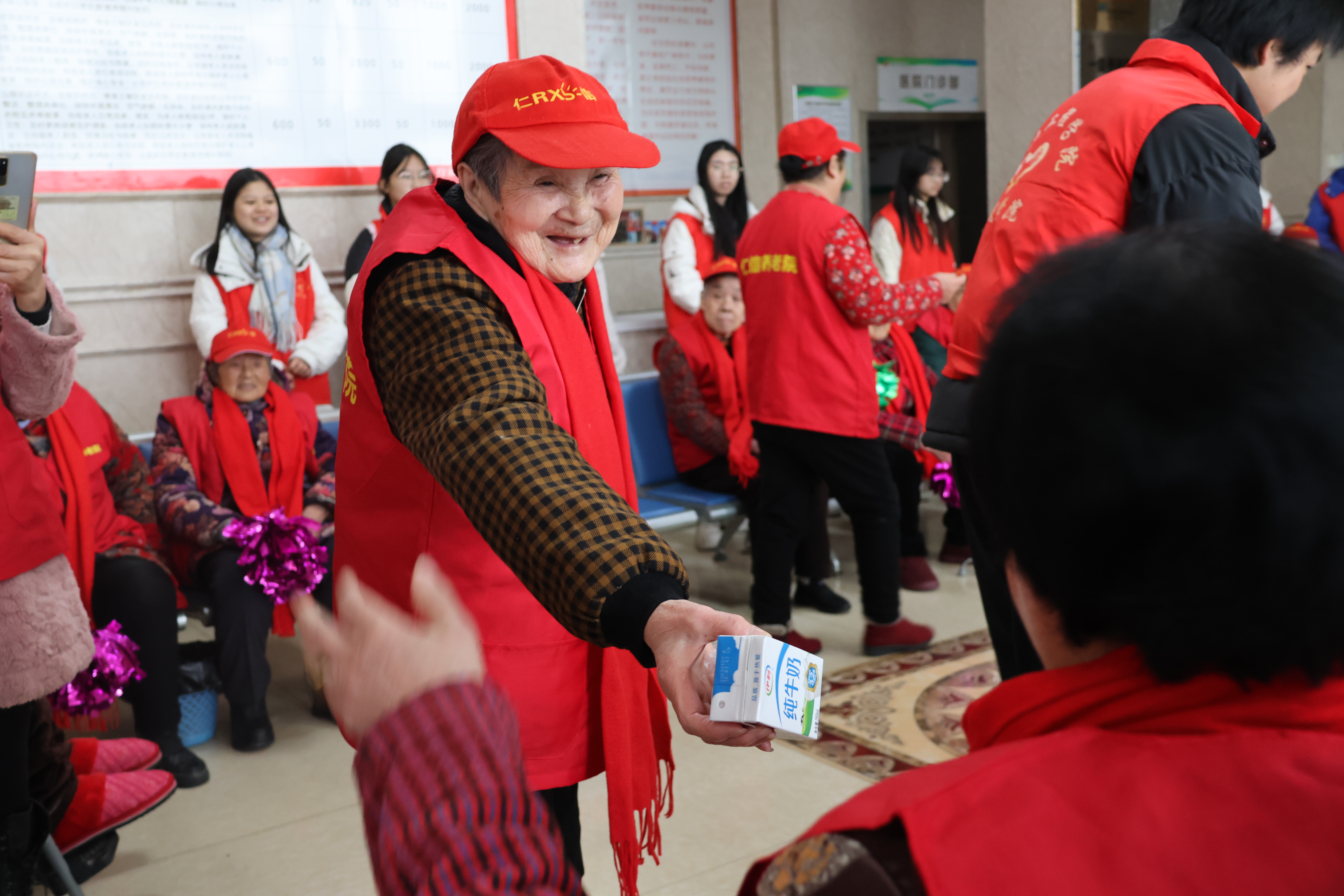 活动现场温情洋溢。“故事布袋”环节中,老人们抽到“第一份工作”“最难忘的旅行”等话题,娓娓道来岁月里的往事,志愿者们俯身倾听、轻声回应,心与心的距离在话语间悄然拉近。“实物盲盒”里的搪瓷杯、顶针等老物件唤起往昔记忆,在老人的讲述中,年轻学子们仿佛看到了那段充满奋斗的青春岁月。当《歌唱祖国》等经典旋律响起时,老少齐声合唱,熟悉的歌声承载着共同的情感;击鼓传花环节将气氛推向高潮,接到花束的老人与志愿者即兴表演,欢声笑语萦绕院落,穿透冬日微寒。