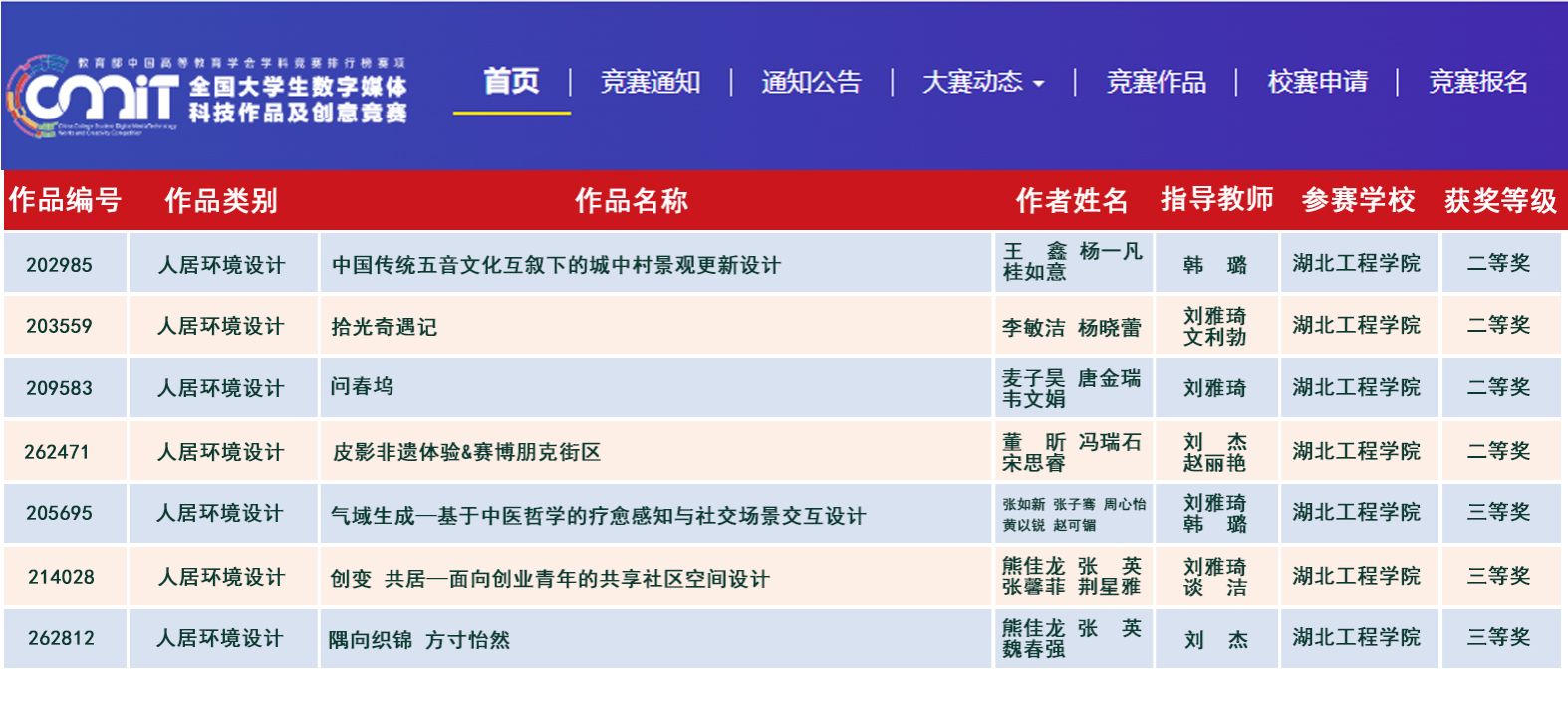 近日,2025年“第13届全国大学生数字媒体科技作品及创意竞赛”湖北赛区省赛评比结果公示结束,我院学子取得二等奖4项、三等奖3项的好成绩。