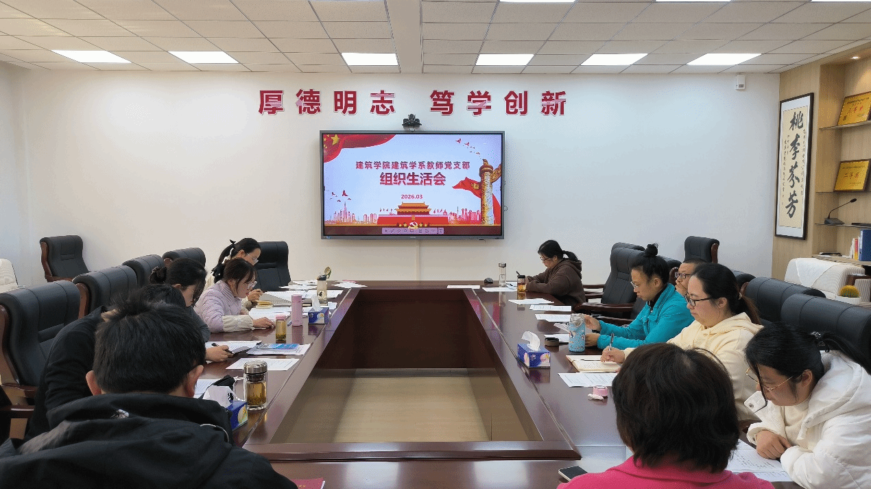 2026年3月12日下午,建筑学院建筑学系教师党支部在天成楼会议室召开2025年度组织生活会暨3月份支部主题党日活动。会议由党支部副书记刘珍主持,支部全体党员教师参加,学院党委副书记黄星到会指导。