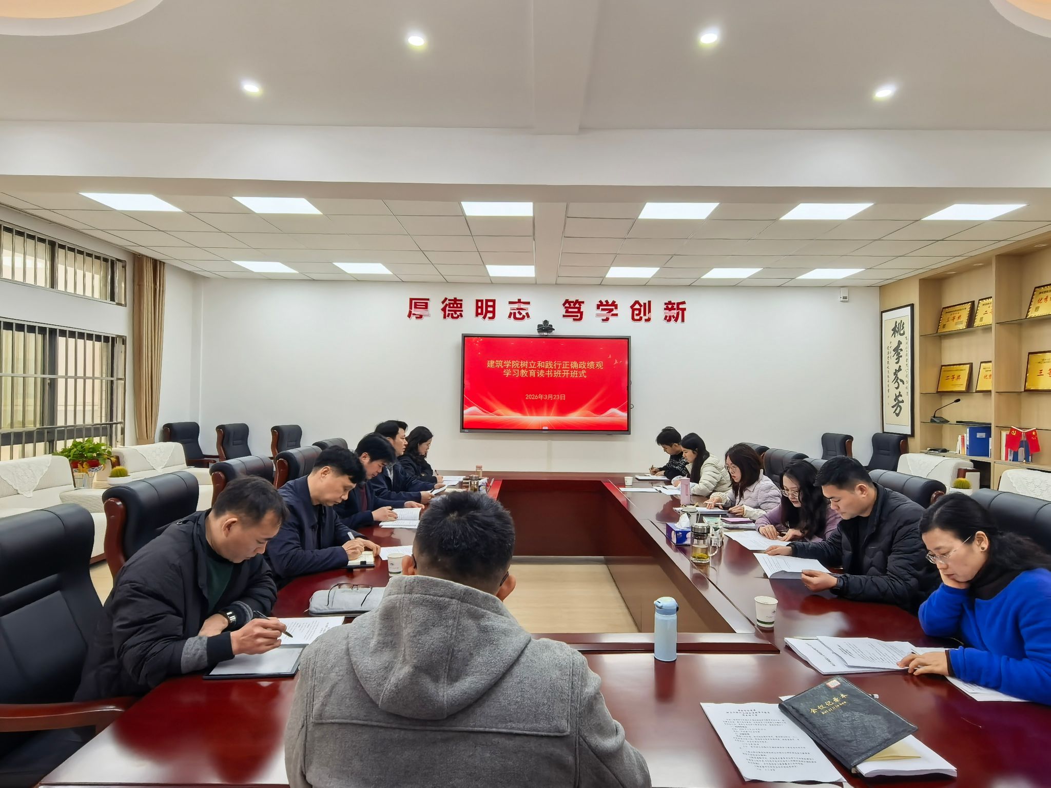 3月23日上午,建筑学院在天成楼314会议室举行树立和践行正确政绩观学习教育读书班开班式。学院领导班子成员、院党委委员、党支部书记和教师党支部支委委员参加开班式,开班式由院党委书记孙传宝同志主持。